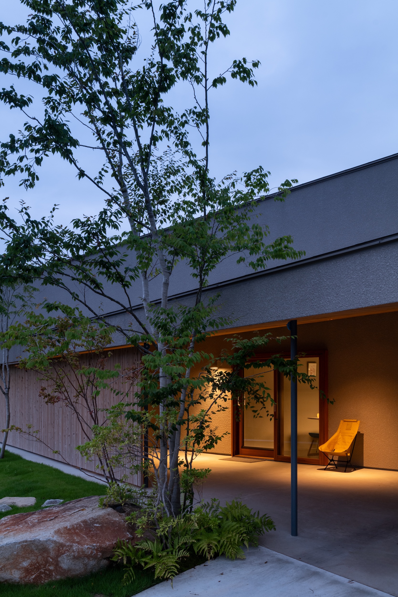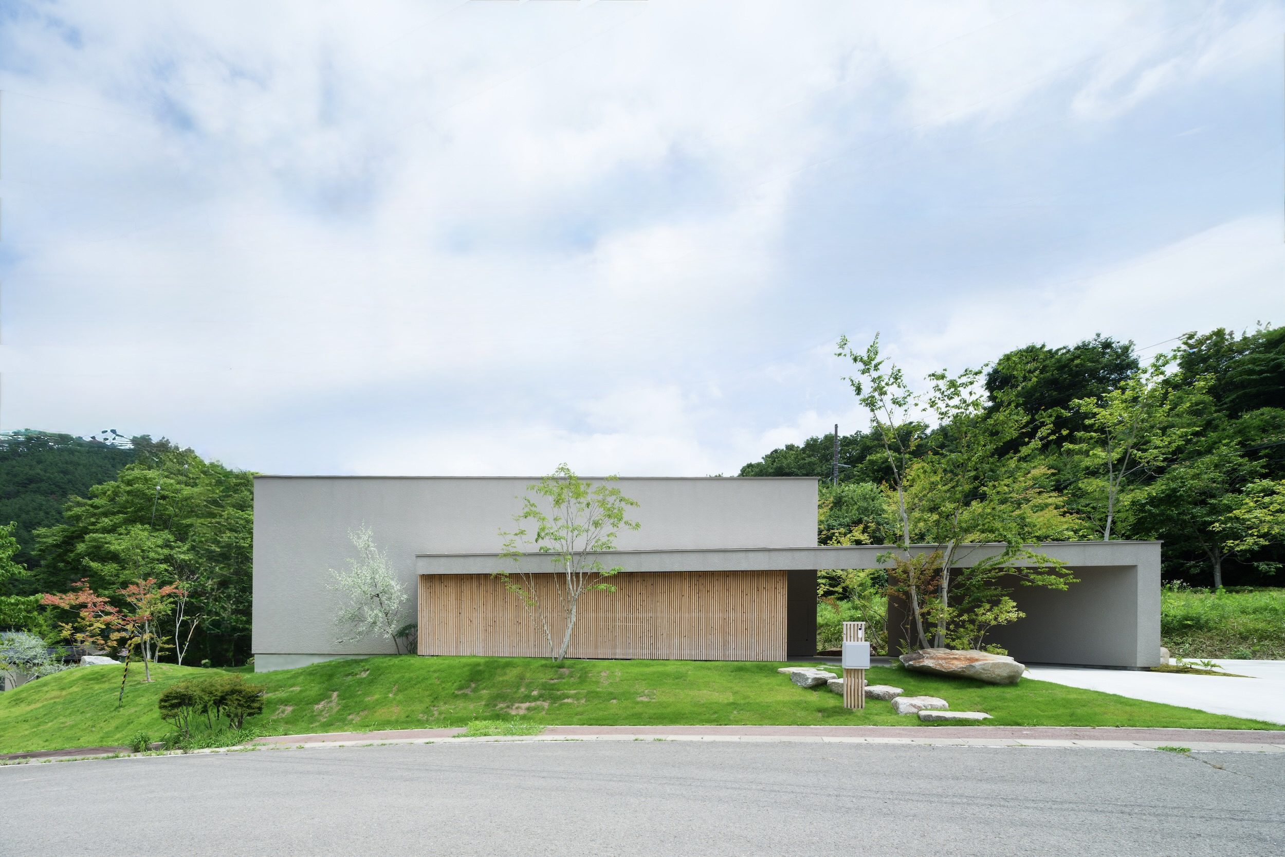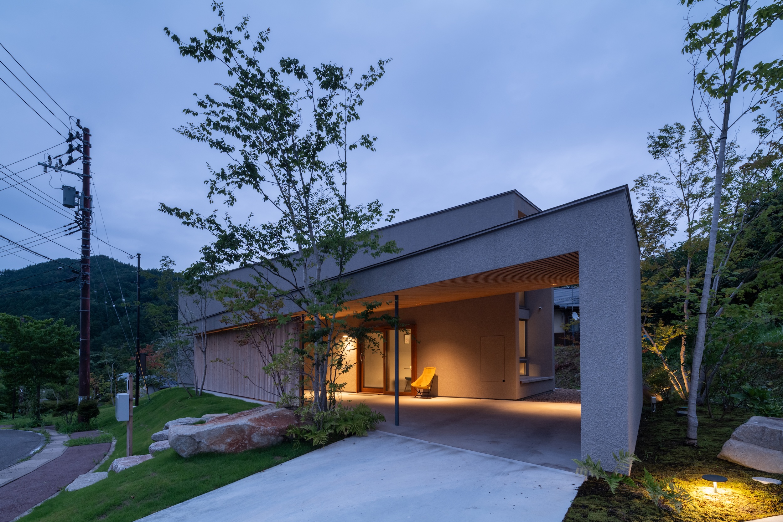 For the approach, locally quarried Marumori stone was used—each piece carefully selected by the client and architect together from the local stockyard.