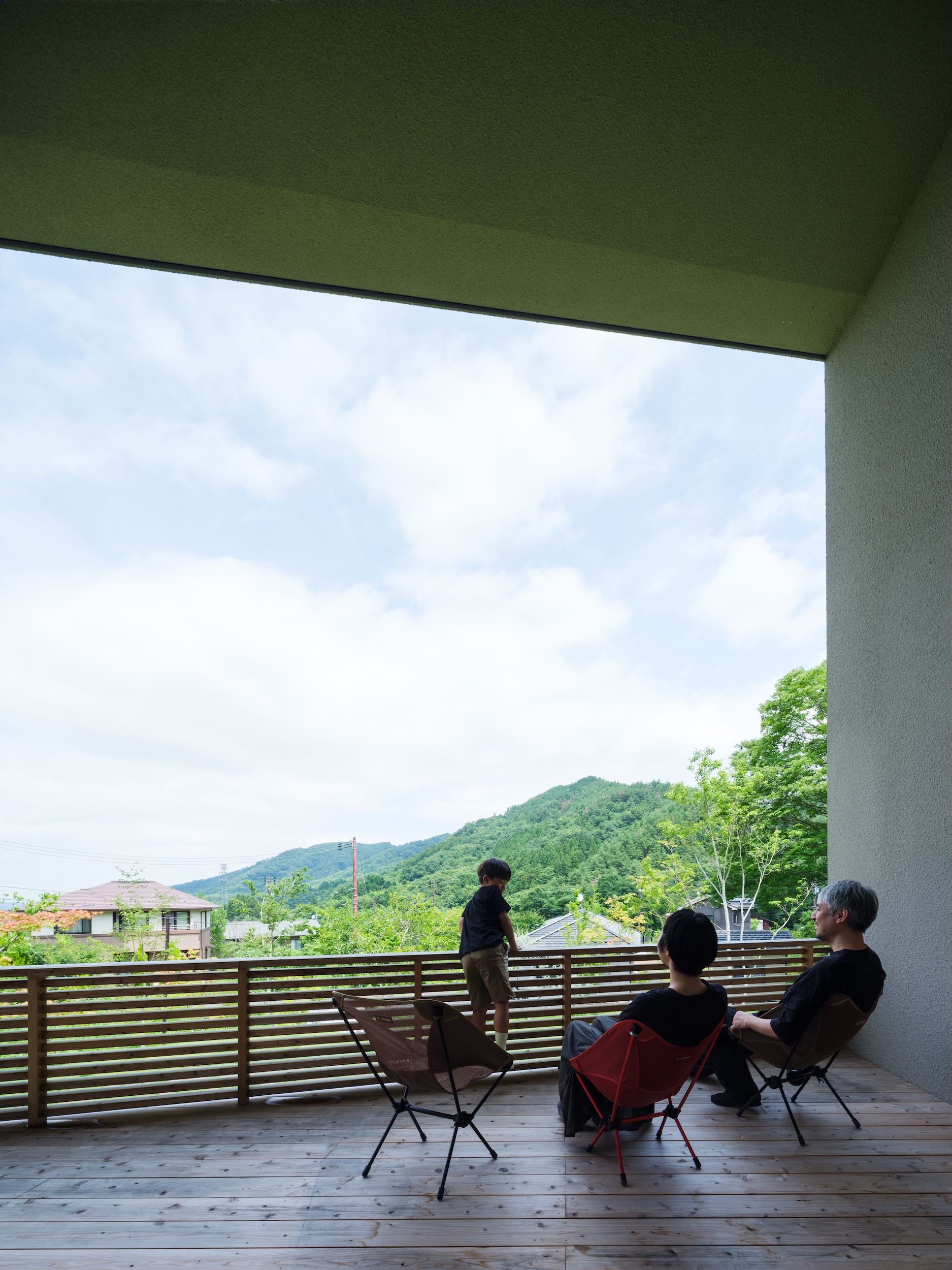 The porch was designed as a semi-outdoor space reminiscent of a traditional engawa (veranda).